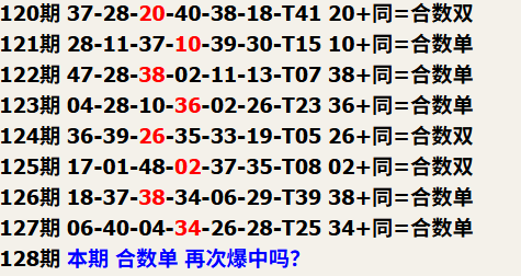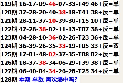 128期信箱红字:勞逸結合 暗码:01 07 08 40 |